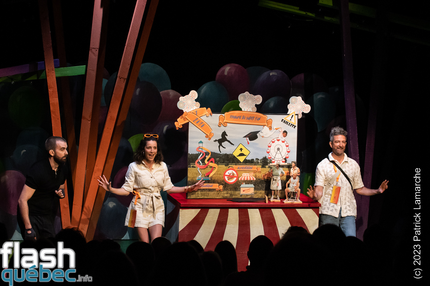 Il n’est pas nécessaire d’avoir vu la première pièce pour comprendre l’histoire. On retrouve quelques personnages initiaux, mais Grandeur minimale requise est une pièce à part entière. On remet d’ailleurs souvent en contexte les spectateurs.