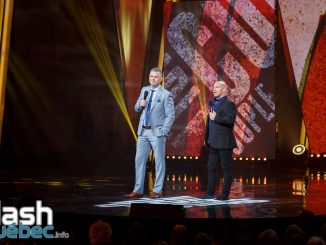Par la suite, c’est Laurent Paquin, un habitué du festival, qui est monté sur scène pour expliquer une citation de Léo Ferré qui veut que les artistes ne devraient pas se prononcer sur des sujets sérieux. Un numéro de groupe a suivi avec comme sujet, le service à la clientèle. Il mettait en vedette Billy Tellier, Réal Béland, Sylvain Larocque, François Bellefeuille et Marie-Chantal Toupin, qui a fait un clin d’œil à son récent incident sur les réseaux sociaux. L’humoriste François Bellefeuille tenait absolument à ce que Mariana Mazza fasse partie de son gala, elle a donc accepté l’invitation et est venue raconter sa visite chez l’esthéticienne et le fait que dans la vie elle ne se fâche pas, elle se venge. Bellefeuille a enchaîné avec un numéro sur les gens qui ont le bonheur facile, ce qui l’enrage au plus haut point. Julien Tremblay, que l’animateur a qualifié de yogourt grec, « tu ne le connaissais pas il y a deux semaines, là tu as un échantillon et demain tu vas achaler tout le bureau avec lui », est monté sur scène avec sa guitare afin de chanter sa colère sur les rêves plates de sa blonde, son ami célibataire qui le conseille sur la vie de couple et sa mère qui vient de débarquer sur Facebook. Dominic Paquet, qui a ajouté qu’il n’est pas bon dans une chicane, a quant à lui parlé des différentes façons de se fâcher. Le spectacle s’est terminé avec Réal Béland, le conférencier Jean-Marc Chaput, Laurent Paquin, la mascotte Victor et le meilleur ami de Bellefeuille, le faucon Claude! François Bellefeuille a su bien s’entourer pour offrir un gala efficace et tranchant, qui vous permettra de vous défouler sans jamais hausser le ton! Le gala de François Bellefeuille est également présenté ce soir à 18 h 30 ainsi qu’à 21 h 30. Pour plus de détails, consultez le www.hahaha.com.