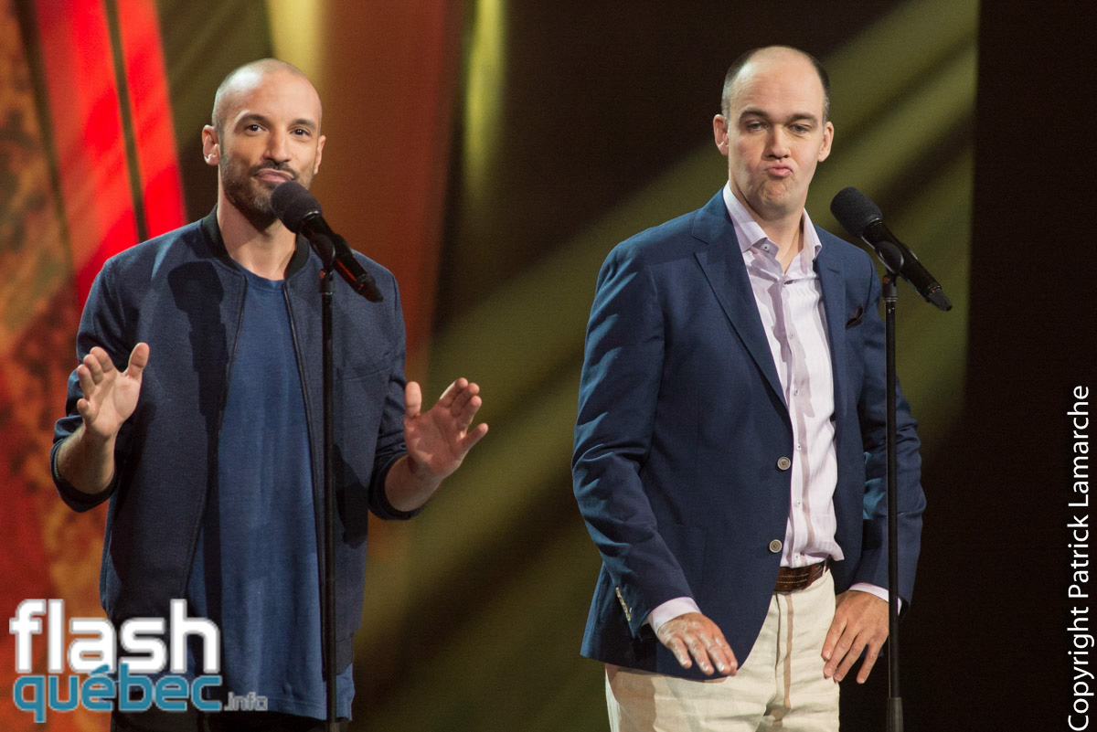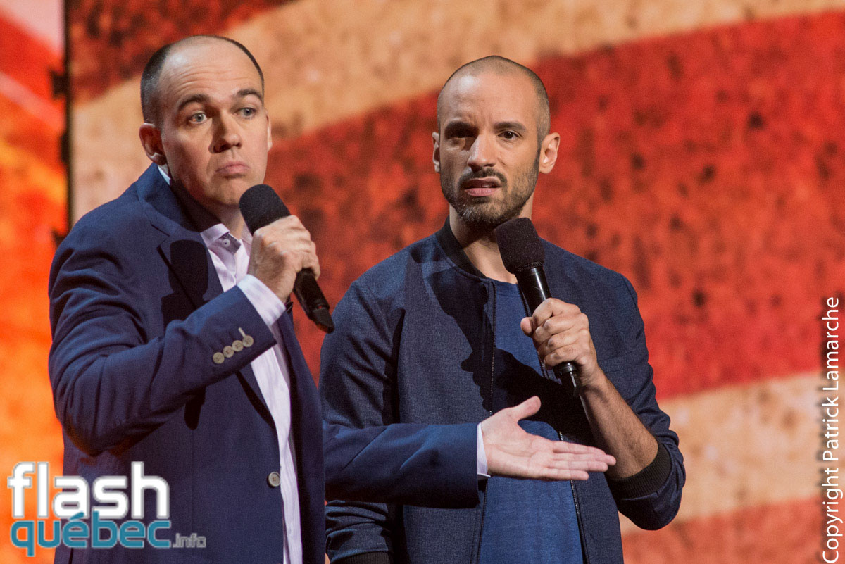 Ouverture en force avec les animateurs de la soirée qui ont bien su donner le ton au gala pour les invités à venir. Le sujet est clair et tranchant; Être de gauche ou de droite. Wagner a été désigné gauche et Nantel droite. Wagner proprose de travailler ensemble, de s’écouter; Ils s’écouteront donc s’échanger une pluie d’insultes et tenter de classer d’un côté ou l’autre des termes comme l’avortement, de partage des richesses, les bélugas, Denis Coderre… Les deux animateurs s’entendent toutefois qu’il n’est pas évident de se situer, que ça dépend des circonstances et qu’en bout de ligne, « on se fait tous fourrer égal par nos politiciens. »