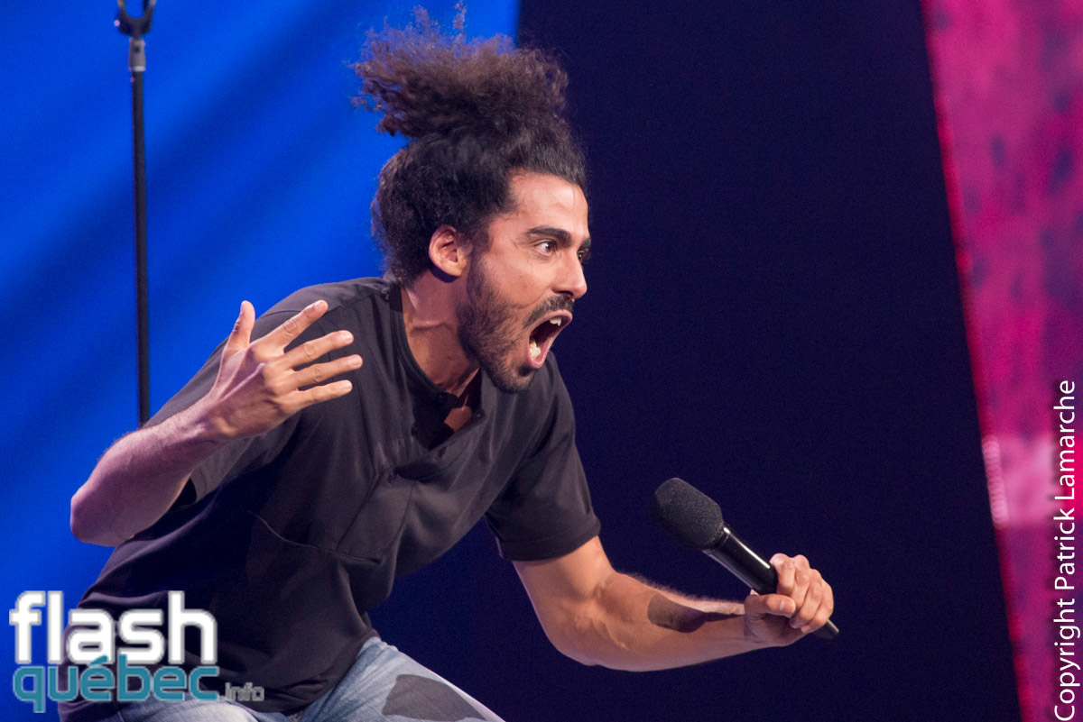 Ovation debout pour Adib Alkhalidey qui lui, est clair. « Je suis de gauche, Pourquoi? C’est simple, les gens à droite veulent que je retourne dans mon pays. » Il affirme aussi être féministe et insiste que les hommes manquent d’empathie envers les femme appuyant ses propos d’une savoureuse anecdote de date au restaurant où la fille mange clairement trop, et même un dessert, mais fini par ne pas vouloir coucher avec le gars. « comme si un tiramisu c’était la clé des vagins de la ville .» Toujours pour appuyer ses propos, il propose une hilarante comparaison pour soutenir le fait que c’est plus demandant de laisser entrer quelqu’un que d’entrer « dans quelqu’un ». Adib affirme que le racisme lui fait gagner sa vie et raconte une tranche de vie raciste qu’il a vécu avec un incohérent raciste daltonien. « Je suis pas un neg’, je suis un terroriste! »