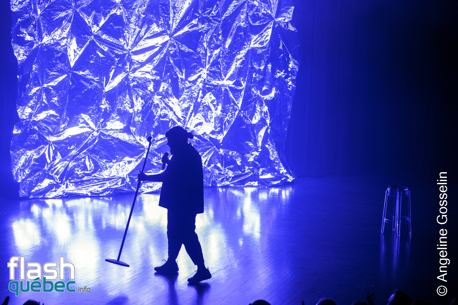 C’est après une première partie solide de Mibenson Sylvain, qui a réchauffé le public pendant plus de 20 minutes, que la soirée a véritablement pris son envol au Théâtre du Gesù, où Jo Cormier présentait jeudi la première très attendue de son nouveau spectacle « Machine ». Dès les premières minutes, le ton s’impose : un univers éclaté, assumé, mais ancré dans une réalité qui rejoint rapidement le public.