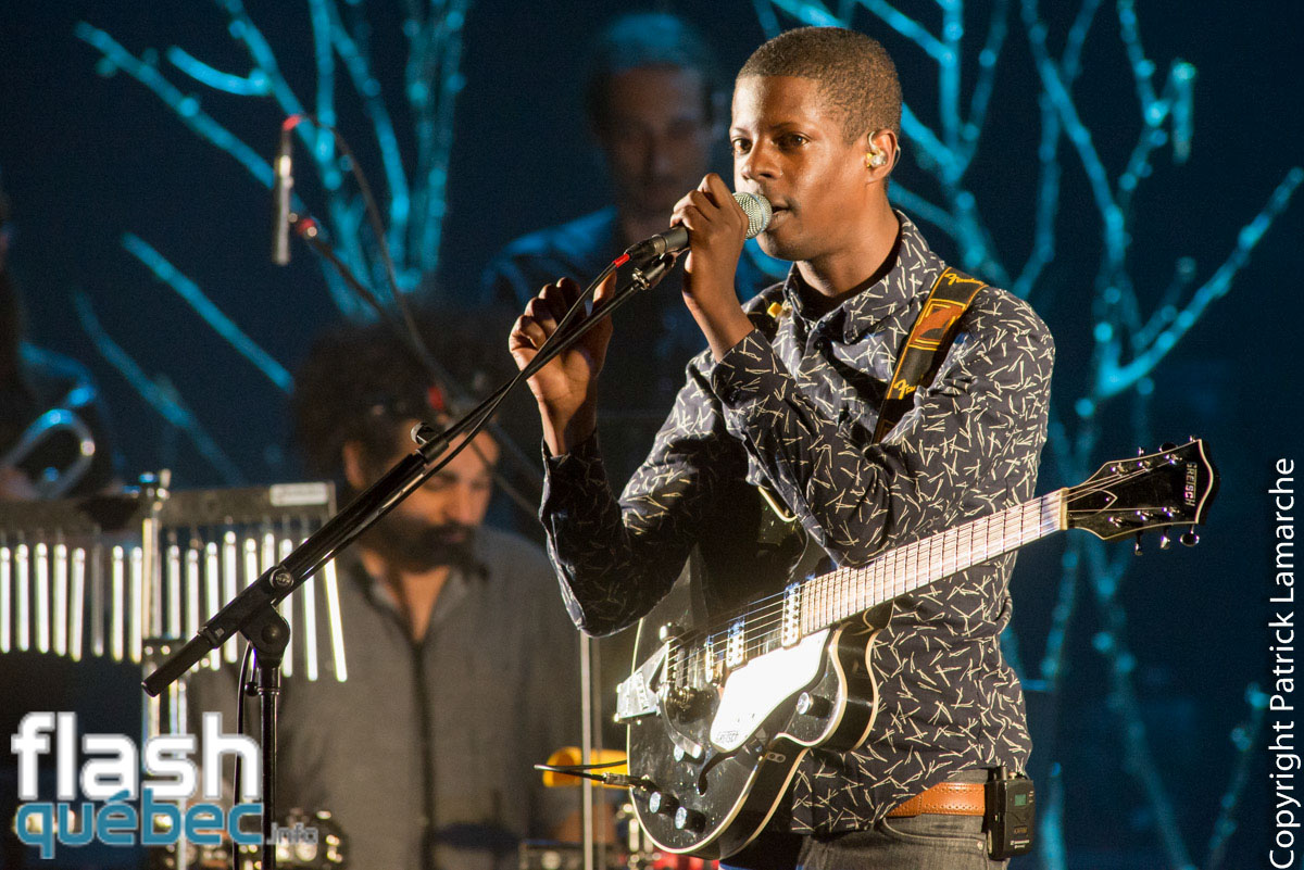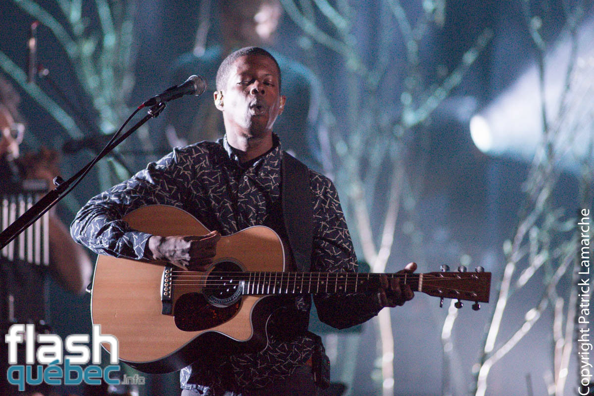 C’est en ouvrant le bal avec un chapeau de cowboy que Claude Bégin a réchauffé la salle du Métropolis. Connu grâce à son album Les magiciens, le chanteur a su mettre le sourire aux lèvres des gens présents avec quelques chansons connues du grand public, en autre Avant de disparaitre qui lui a valu de nombreux applaudissements. Claude est aussi l’une des clés du succès de Karim Ouellet, puisqu’il a composé en grande partie les succès de celui-ci. Les avis sur sa prestation semblent mitigés, quand la plupart des gens l’ont adoré certains ont entendu quelques fausses notes. Quoi qu’il en soit, ce n’est pas à cause de quelques accrocs que le public s’est refroidi. Au contraire, c’est avec chaleur et enthousiasme que tout le monde s’est exclamé à l’arrivée de Karim Ouellet! Le décor était magnifique, il était composé d’arbres et de beaucoup de branches rappelant une forêt énigmatique. Des projections numériques en arrière-scène complétaient le tout. On ne peut pas dire que la mise en scène était fade et terne! Au contraire, nous avons assisté à des changements d’atmosphère pour chaque morceau joué, un vrai bijou visuel! La soirée n’a pas été sans malaise, on peut noter l’apparition de Claude Bégin, torse nu, dans une boule transparente, qui a fait du body surfing plutôt raté! Ce fut un moment épique de la soirée, mais pas pour la bonne raison… Après quelques tentatives infructueuses, le chanteur est retourné à l’arrière-scène et s’en fu fini de l’apparition douteuse de Claude Bégin! Dans le style douteux, nous avons bien plus apprécié les renards et autres animaux sur scène, faisant partie de la mise en scène atypique de Karim Ouellet.