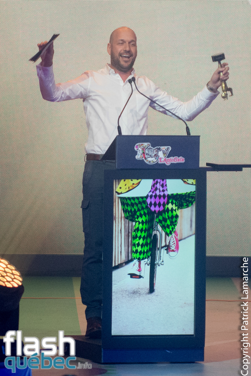 La devise du gala était bien claire; à KARV, tout peut arriver! Avec la joie du direct, il peut en arriver beaucoup de choses, mais tout s’est bien déroulé. Il n’y a rien que l’animateur aurait préféré ne pas voir arriver, mais… Il affirme qu’il se serait bien passé de rapper. C’était beaucoup de travail et même si le résultat est impressionnant, c’était hors de sa zone de confort. « Aucun lipsync là-dedans, j’ai rappé tout le long aux côtés de Kevin Bazinet. » Son moment coup de cœur? La gang de « Le Studio » qui a accepté de danser sur scène alors que ce n’était pas prévu. « On leur a demandé à la dernière minute et ils ont accepté! J’étais très content! » « Je ne peux pas croire que c’est fait, que c’est fini! » Chapeau Stéphane, tu t’es bien « arrangé avec ça! » … « Oui, c’était GÉNIAL! »