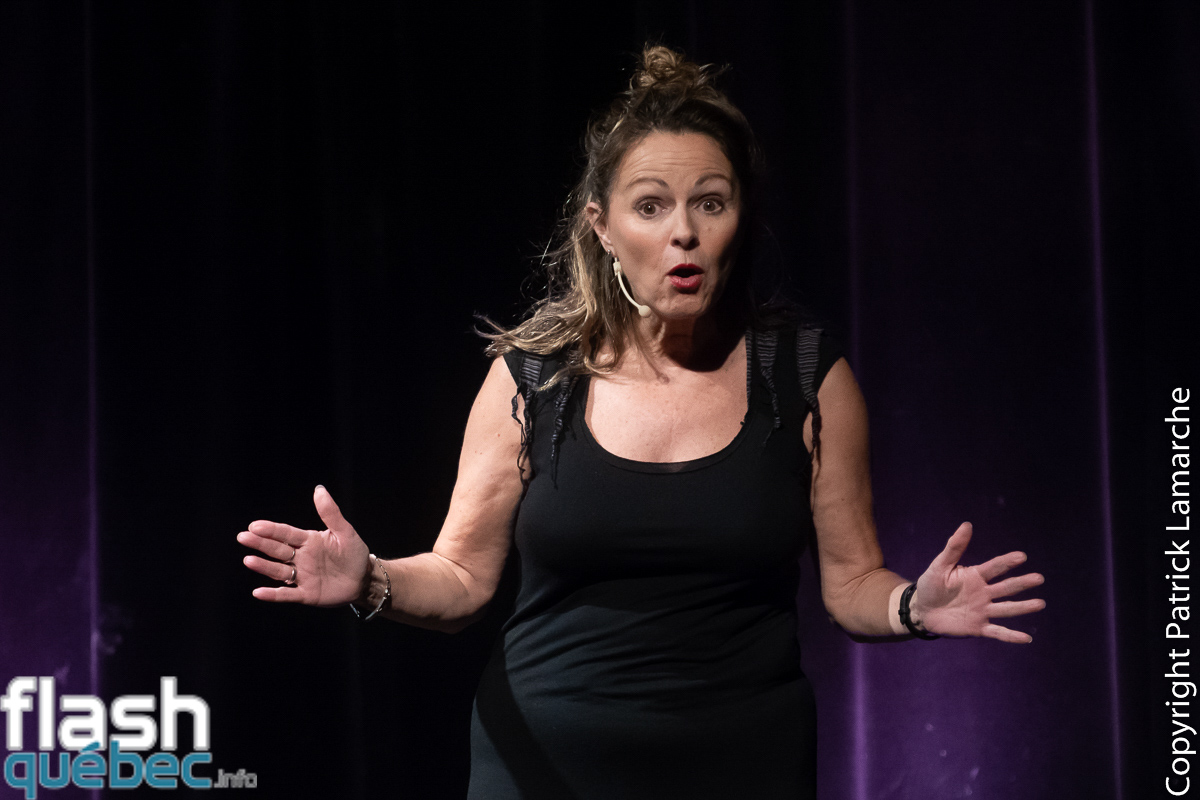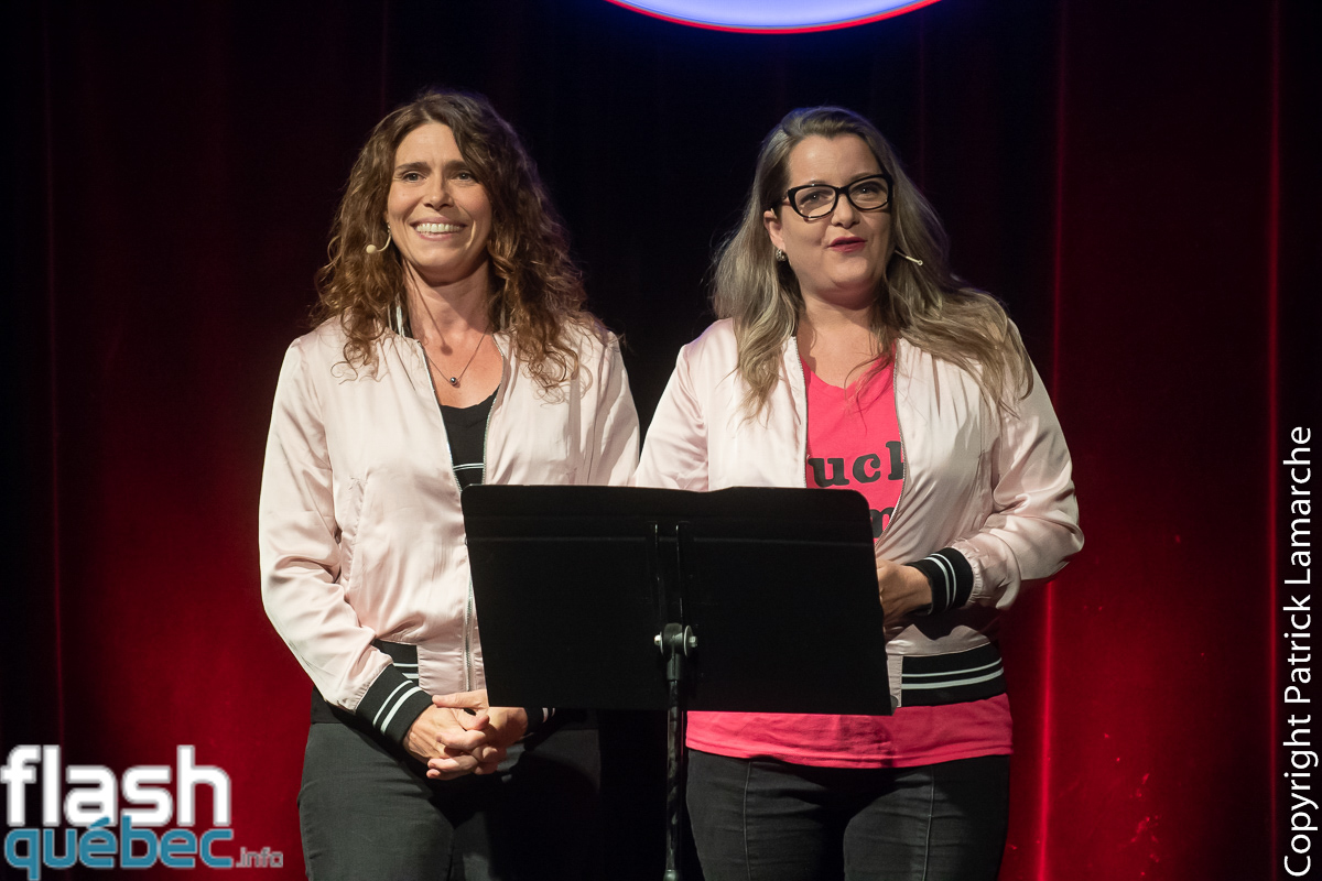 Marie-Christine Pilotte qui tient le rôle d’animatrice et de « gérante de scène » est aussi le noyau rassembleur des Femmelettes qui n’avaient à la base qu’elle comme point commun. Sympathique humoriste (aux airs et au rire de Brigitte Lafleur) qui se présente comme une orthopédagogue qui hait les enfants, lesbienne et « comme toutes lesbiennes qui se respectent » : Vegan. « Je suis Vegan pour pouvoir me penser supérieure et juger le monde (…) je me criss des animaux, j’veux juste être mince. » Le ton de la soirée est lancé.