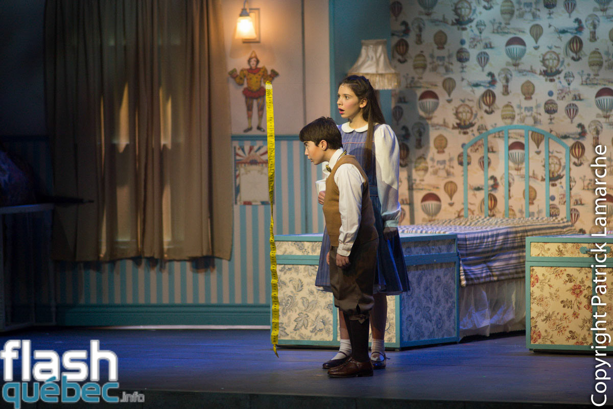Pour que le spectacle soit une réussite, il fallait une Mary Poppins à la hauteur de nos souvenirs et c’est en la jeune comédienne Joëlle Lanctôt que Serge Postigo à misé. Non seulement elle est belle et charismatique, mais elle incarne la nounou avec une justesse et une finesse exemplaire ! Il n’y a rien à redire sur son jeu ni sur sa voix, une étoile est née! Les fans de comédies musicales connaissent assurément la comédienne depuis qu’elle a joué Betty Rizzo dans Grease, l’été dernier. J’ai eu le plaisir de m’entretenir avec elle, avant le spectacle : « Je suis tellement heureuse de faire partie de l’aventure! Dans ce métier là, on se fait dire plus souvent « non » que « oui ». Ça fait toujours mal, mais on s’habitue, on guérit plus vite. J’ai appris à apprécier le processus d’audition en ne me faisant pas d’attente. Pour Mary Poppins, je n’en avais absolument pas. Je me sentais d’ailleurs un peu à l’extérieur de mon champ de compétence. Me rendre jusque là c’est très surréaliste. C’est beaucoup de bonheur, mais difficile à concevoir et à absorber en même temps. Mais je suis fière. Je pense que le spectacle est d’une grande qualité, mes collègues sont ultra talentueux, on y raconte une histoire tellement humaine, touchante, simple et intemporelle. » Lorsque je lui demande son moment préféré de la pièce, elle répond : « Je savoure particulièrement les moments de complicité avec les enfants et avec mon collègue d’amour Jean-François Poulin! »