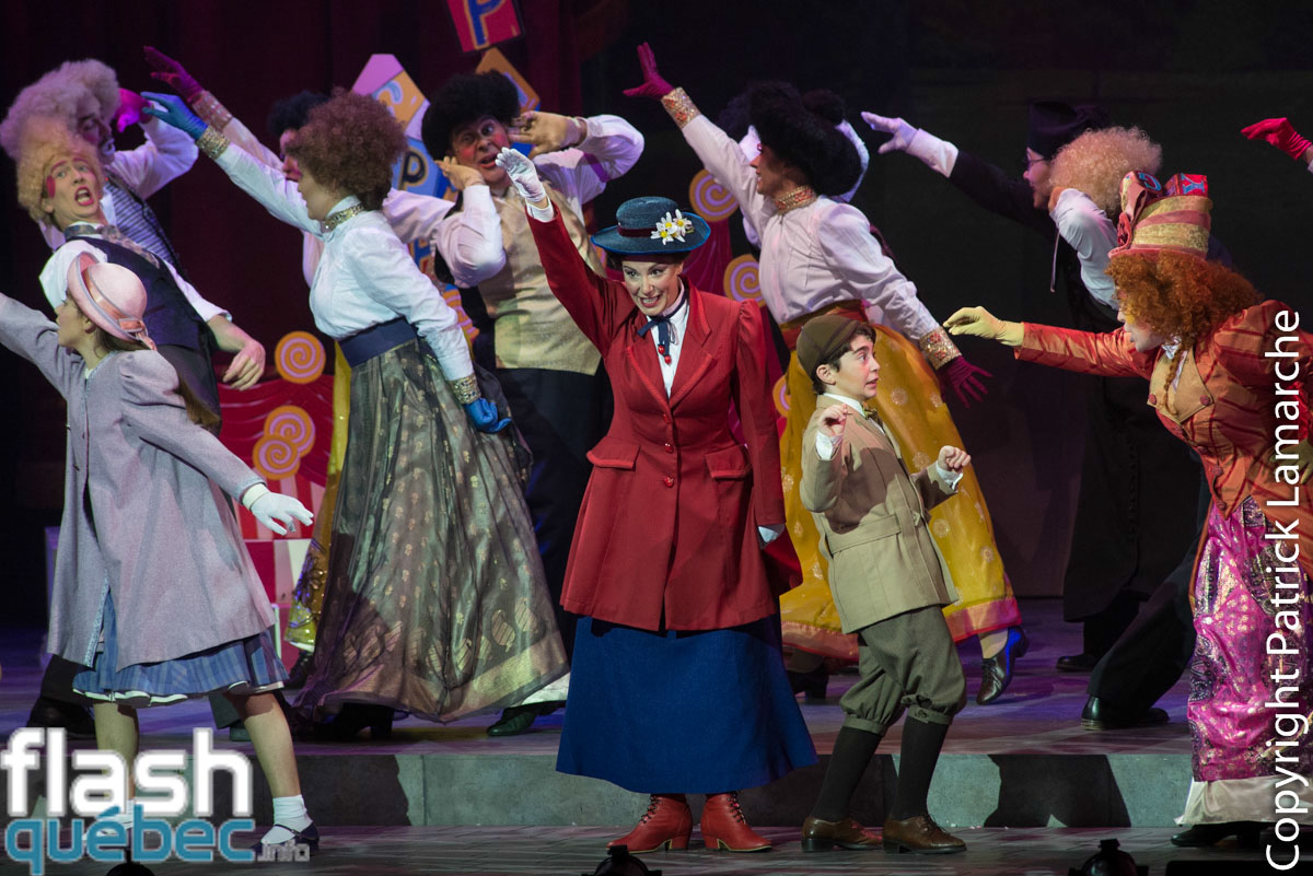 La nounou préférée de tous arrive sur scène dans une comédie musicale Supercalifragilisticexpialidocieuse! Mary Poppins est basée sur l’œuvre de P.L Travers et le film de Walt Disney dans une mise en scène, traduction et adaptation de Serge Postigo. La comédie musicale Mary Poppins a fait vibrer les spectateurs lors de 2 500 représentations sur Broadway. J’ai eu le plaisir de voir la pièce présentée à New York à deux reprises et je ne peux rien dire de mal de notre production québécoise! Le défi est relevé et malgré la comparaison automatique immanquable, nous pouvons être fiers d’être aussi forts dans les productions montréalaises. Mary Poppins nous transporte dans une famille anglaise des années soixante (les Banks) dans une maison traditionnelle où les enfants n’écoutent guère. Un jour, une énigmatique dame nommée Mary Poppins vient chambouler la vie de toute la famille en devenant une perle rare qui saura améliorer la vie des enfants et des parents. Dès les premières secondes de la pièce, la magie a opéré! Non seulement le décors était d’une impressionnante qualité, mais les costumes étaient merveilleux! Dès le premier coup d’oeil, nous étions transportés dans un univers magique des années 60. Juste pour rire avait promis de nous éblouir et c’est exactement ce qui est arrivé pour tout le monde, hier soir au Théâtre St-Denis. Cette coûteuse méga-production est la plus grosse jamais montée à Montréal. Serge Postigo, le metteur en scène, a su viser juste et mener à terme ce projet audacieux ! Pour notre plus grand bonheur, il y a beaucoup plus de chansons dans la comédie musicale sur scène que dans le film!