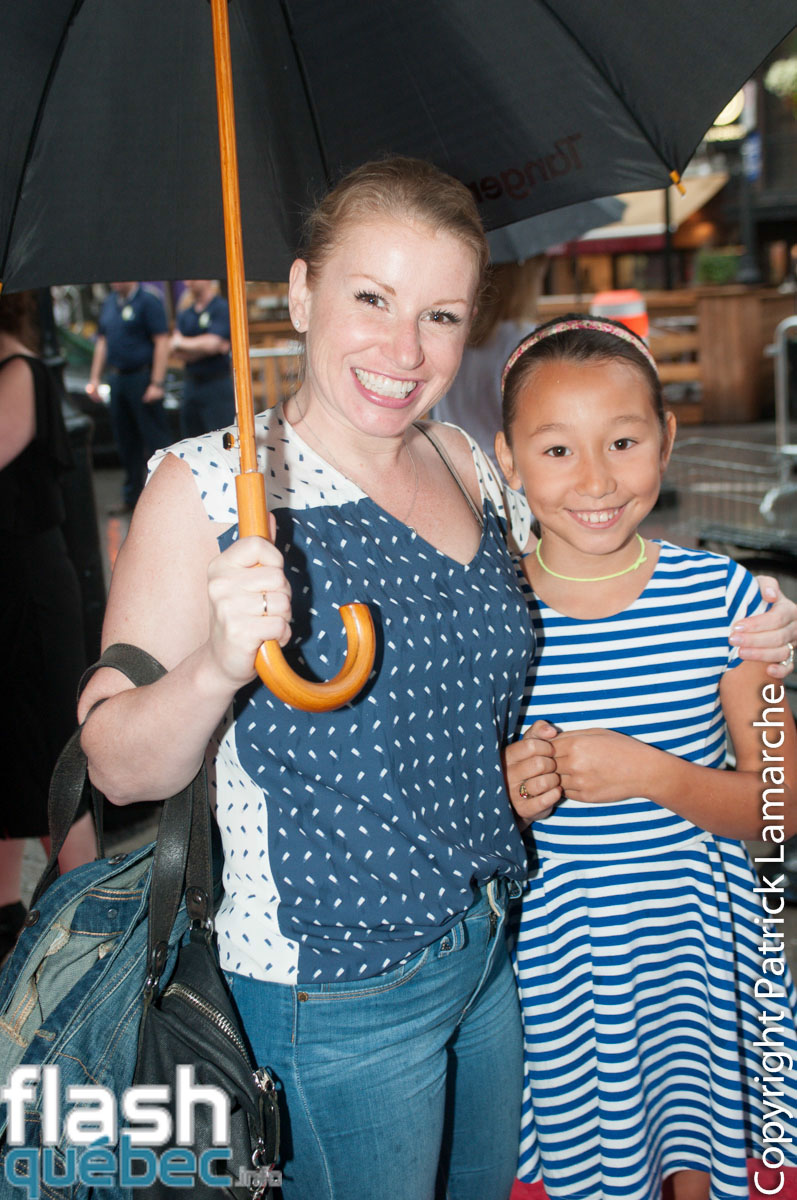 C’est sous une pluie intense ( mais magique! ) que le tapis rouge de Mary Poppins s’est déroulé, au Théâtre St-Denis à Montréal. En effet, la température n’était pas clémente et les artistes n’ont pu profiter du moment à proximité de leurs fans et amis. L’humidité étant très pesante, la plupart des gens ont préféré se réfugier à l’intérieur du théâtre, où l’air ambiant était beaucoup plus agréable! Du coup, peu de vedettes ont pu être rencontrées, mais certaines ont eu la générosité de m’accorder quelques mots.