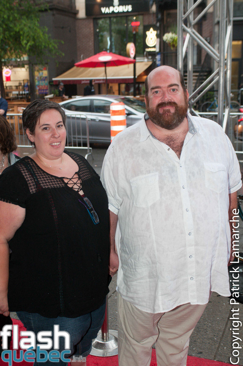 Un peu plus loin, on rencontre Marina Bastarache qui se confie sur sa passion des comédies musicales: « J’adore les comédies musicales ! Mon expérience dans Hairspray fût mémorable et je sais ce que les acteurs ce soir peuvent ressentir. Mon grand ami, Steve Bolton, est chorégraphe ce soir pour le show et la plupart des danseurs sont tous mes amis. Je suis donc heureuse de pouvoir venir voir ma gang ce soir ! » Pierre-Olivier Beaudoin qui accompagnait la belle ajoute : « En effet, le meilleur show que j’ai vu au Québec était Hairpray… Mais pas juste à cause que Marina jouait dans le show, vraiment parce que je pense que c’était le best ! Reste à voir si ce soir ça va dépasser mes attentes… Dans tous les cas, je suis déjà fan puisque tout mes amis sont dans le spectacle de ce soir. Ça ne peut pas être mauvais! » Étienne Cousineau de La Voix, me raconte qu’il a aussi beaucoup d’amis dans la production de ce soir. Il profite du moment pour me parler de ses projets : « Je rêve de chanter Le fantôme de l’opéra! Peut-être qu’un jour ce sera mon tour. Pour l’instant, je travaille sur la sortie de mon 3e album. Il n’y a pas de date de sortie encore. Je travaille aussi sur un spectacle de danse contemporaine. À l’automne, je chanterai dans deux productions d’opéras à Montréal. L’une d’elle s’intitule La Grande-duchesse de Gérolstein et j’y incarne la duchesse qui se trouve à être le rôle principale de la pièce! »