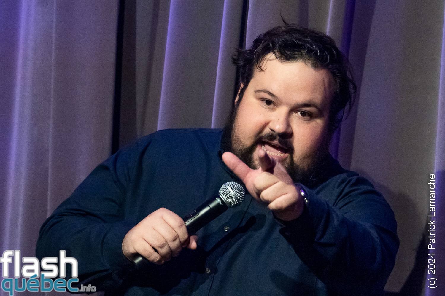 C’est Charles-Antoine Des Granges qui s’occupait de sa première partie. L’humoriste « Plus grand, plus gros que tout le monde », est surtout plus drôle que beaucoup d’autres humoristes!! Une belle découverte qui fait un peu penser à Jean-Marc Parent avec son assurance et sa solide livraison.