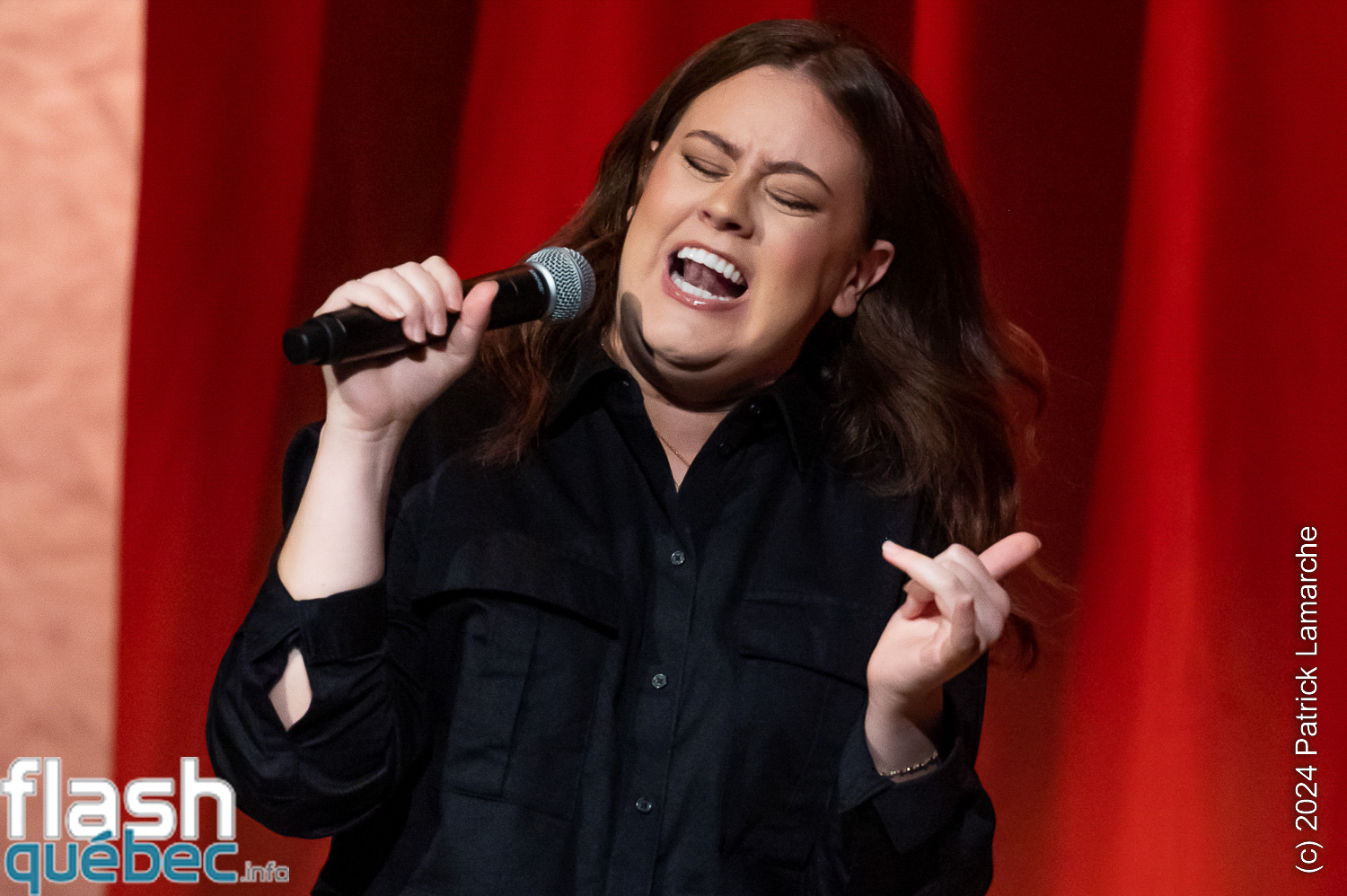 L’humoriste s’est livrée sans failles, avec le naturel et la fougue qu’on lui connaît. ( Un rythme et une aisance à la François Bellefeuille) Elle explique que la mauvaise herbe pour un ne l’est pas nécessairement pour d’autres, écorchant avec amour sa famille et ses amis . Originaire de Drummondville, Megan s’assume avec fierté et dérision.