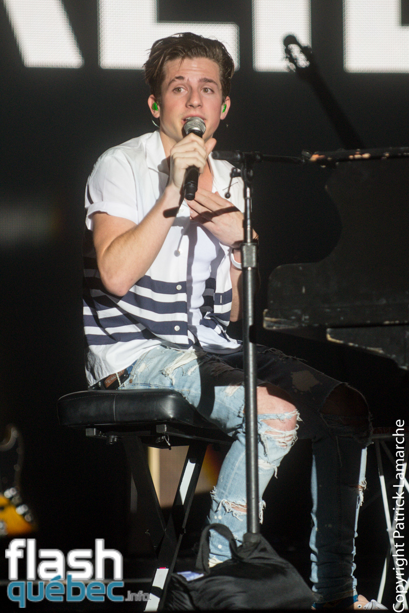 Pour terminer sa performance, il a conté qu’il avait eu la chance d’être approché pour écrire une chanson que l’on entendrait dans le montage-hommage à Paul Walker pour le film Fast and Furious 7. Est alors venu See you again, qu’il a créé en pensant à son ami décédé dans un accident de la route. Tout au long de son spectacle, Charlie Puth a interagi avec les gens avec humour, il leur a même demandé «Hey guys, what is poutine? ».
