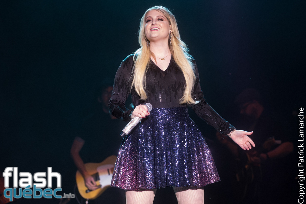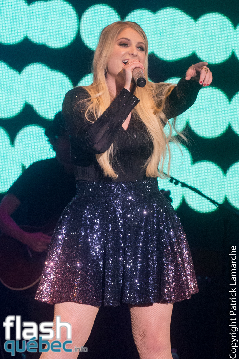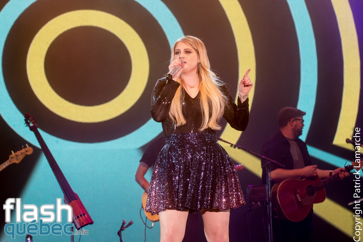 L’artiste a également offert deux nouvelles chansons avant d’interpréter son succès Lips Are Moving accompagné par le public qui chantait à tue-tête. En rappel, la chanteuse ne pouvait pas passer à côté de la pièce qui l’a fait connaître. Elle a donc chanté All About That Bass sous une pluie de confettis.