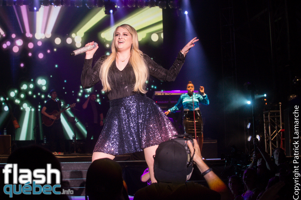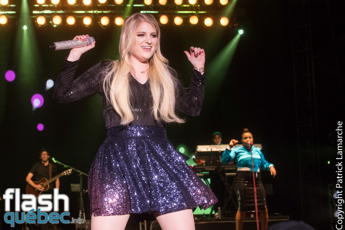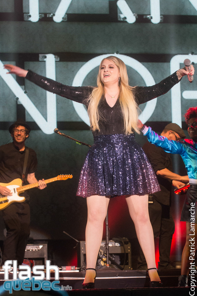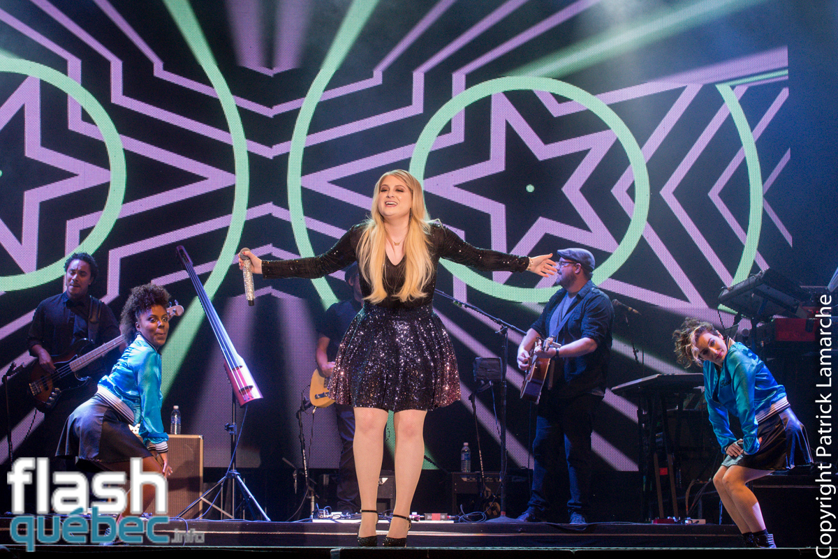 L’artiste a également offert deux nouvelles chansons avant d’interpréter son succès Lips Are Moving accompagné par le public qui chantait à tue-tête. En rappel, la chanteuse ne pouvait pas passer à côté de la pièce qui l’a fait connaître. Elle a donc chanté All About That Bass sous une pluie de confettis.