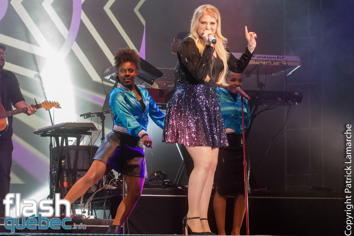 Vers 21 h 45, c’est la superstar Meghan Trainor qui est entrée sur scène avec 2 danseuses, 2 choristes et quelques musiciens. Dans le cadre de sa tournée The MTRAIN Tour, elle a choisi de venir au Québec pour la première fois.