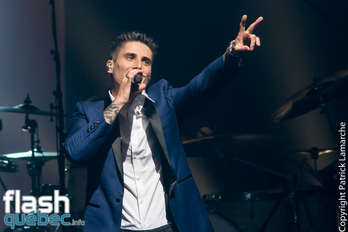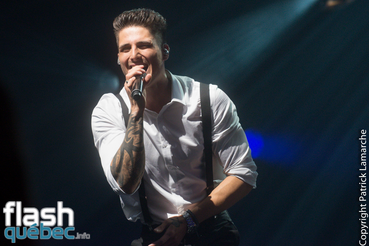 Sous les cris de plusieurs admiratrices, Kevin Bazinet a débuté le spectacle en force avec Talk to Me, son premier extrait radio. Il était visiblement heureux d’être sur la scène du St-Denis et a même avoué que c’était à cet endroit qu’il avait vu son premier spectacle et que c’était maintenant à son tour de faire entendre son matériel au public.