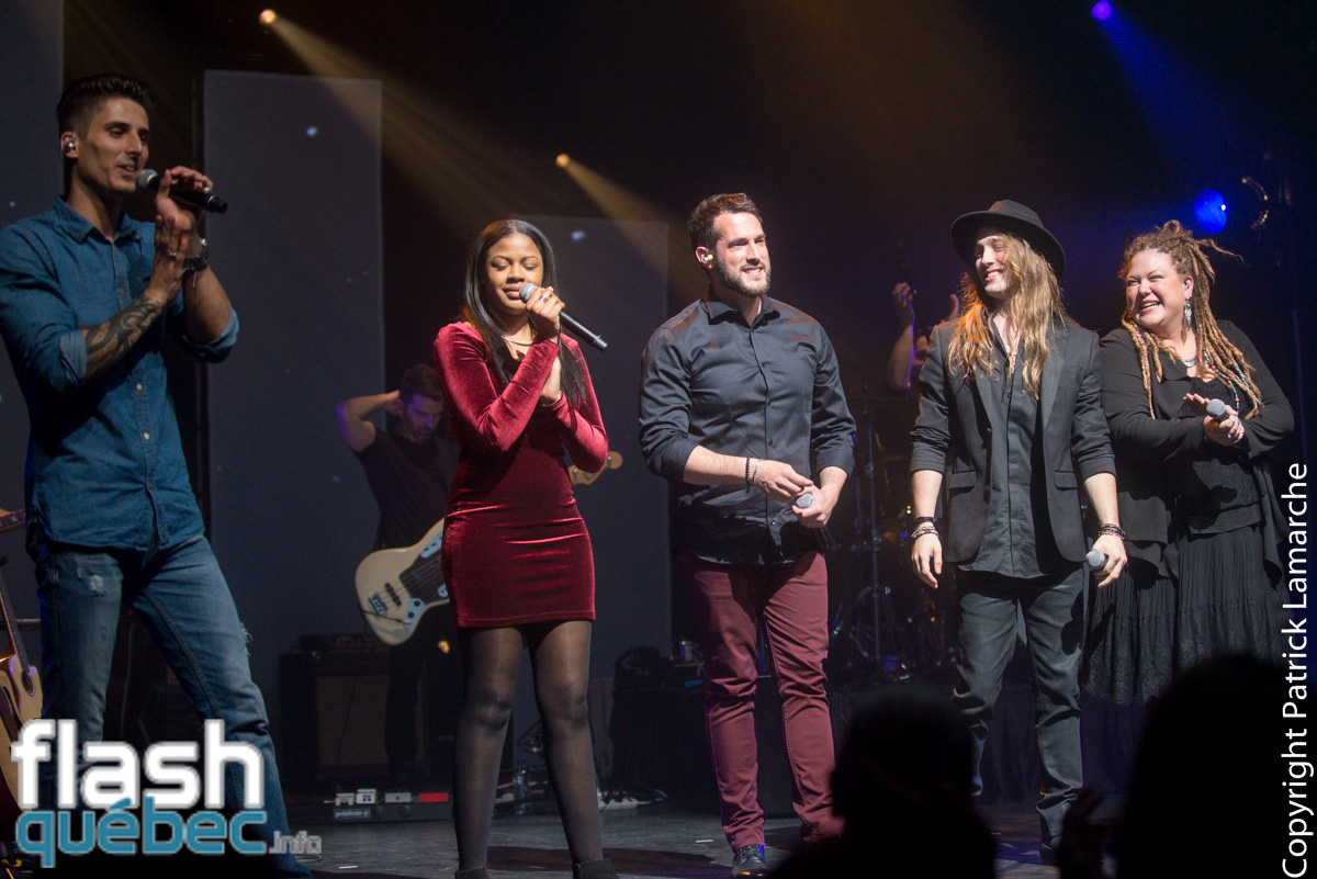 Comme promis lors de son passage à La Voix à la mi-avril, Kevin a ensuite invité les finalistes de l’émission à performer sur la scène du St-Denis. Stéphanie St-Jean a débuté avec Ma chambre qui lui a valu la victoire, Noémie Lorzema a interprété Tout donner. La Travismania ne s’étant pas essoufflée, les spectateurs ont acclamé Travis Cormier venu chanter Dream On et Yvan Pedneault a clôt avec We Are The Champions.