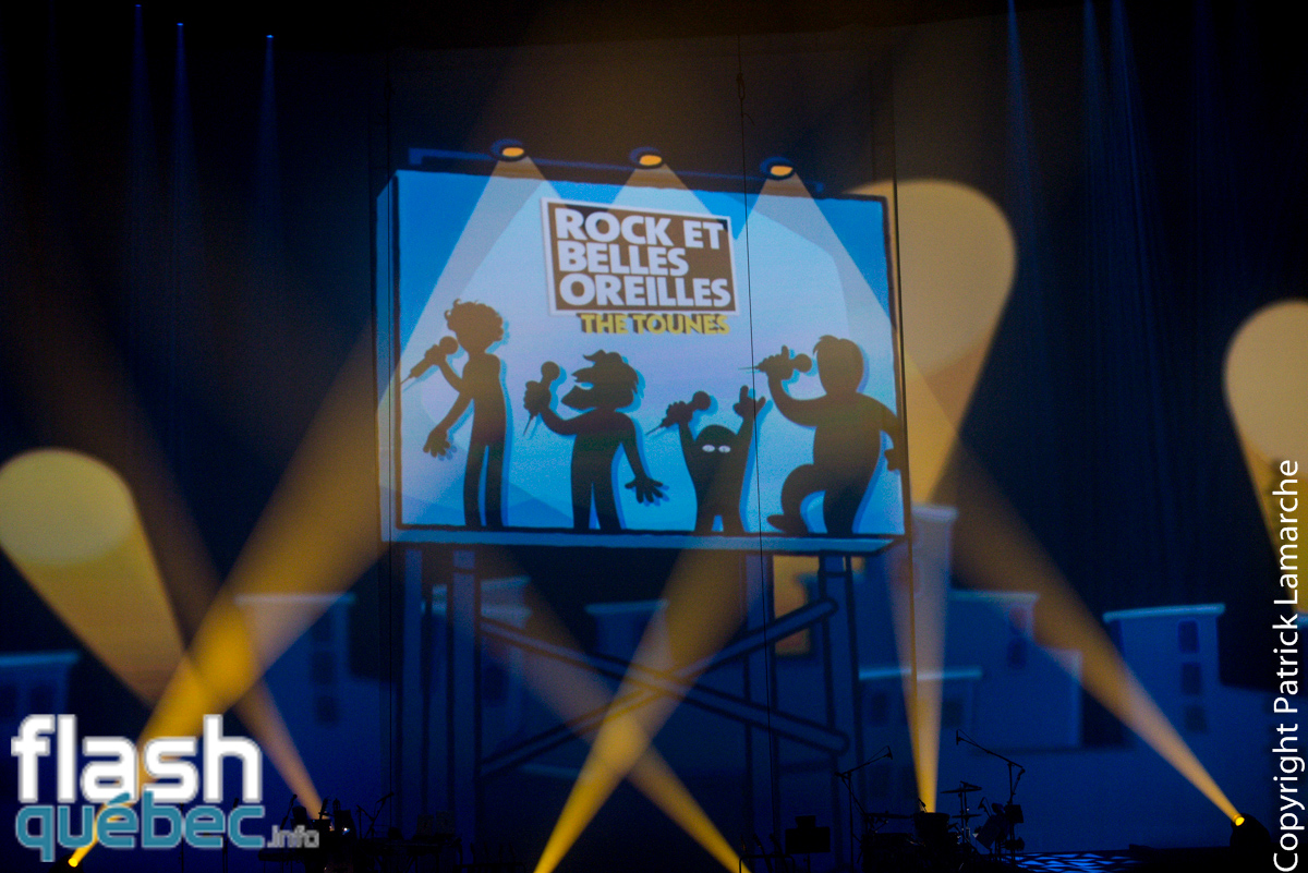 Les boys de Rock et Belles Oreilles étaient attendus de pied ferme vendredi dernier au Centre Bell et ils nous ont pas déçus! Guy A. Lepage, Yves P. Pelletier, André G. Ducharme et Bruno E. Landry n’ont eu qu’à mettre le petit orteil sur scène que DÉJÀ, la foule les acclamait en roi et en redemandait encore et encore! Oui, les fans finis, tout comme les curieux, étaient en délire devant des RBO gonflés à bloc, accompagnés sur scène par les musiciens des Porn Flakes dans le cadre du Festival Juste pour rire… En effet, on aurait dû penser à s’amener une provision de bouchons pour les oreilles, tellement ça criait fort autour de nous! Mission accomplie pour RBO!