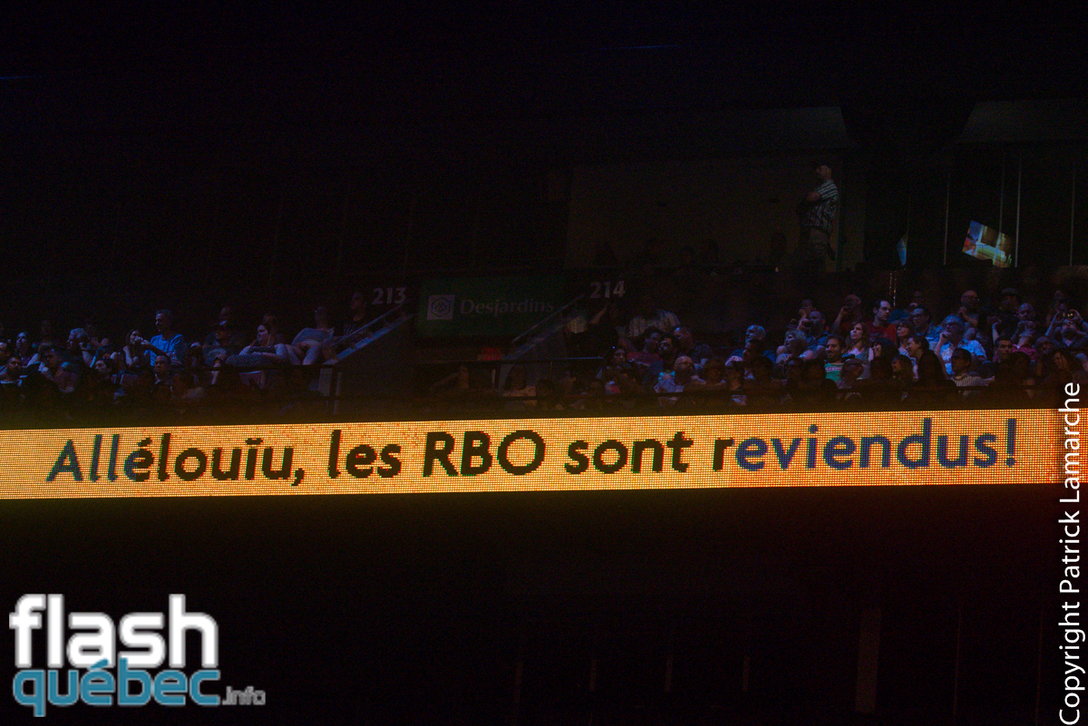RBO au Centre Bell, c’était aussi: une mise en scène super efficace et réglée au quart de tour, un Guy A. Lepage qui se démarquait plus que jamais en chanson avec son ton de voix très aigu et strident, un Richard Z. Sirois efficace, des projections puissantes et une Mitsou totalement dans son élément comme remplaçante de Chantale Francke (son absence se faisait tout de même sentir, mais Chantale a fait le souhait de ne plus faire de scène).