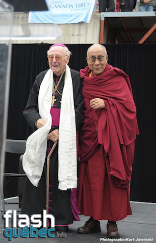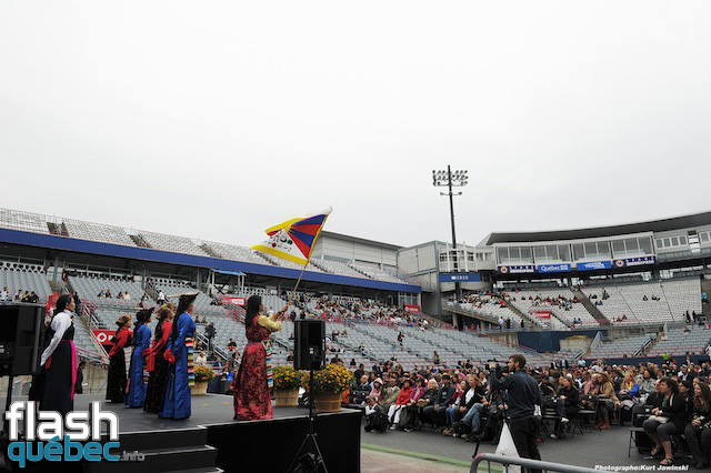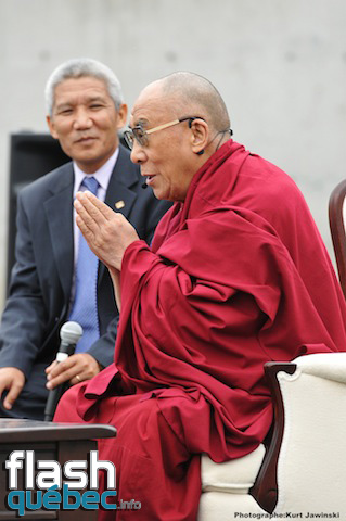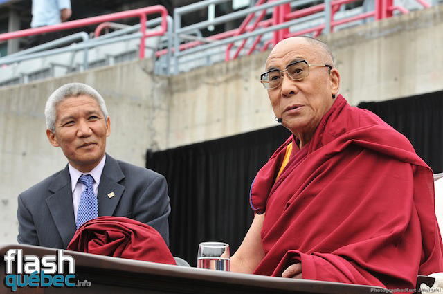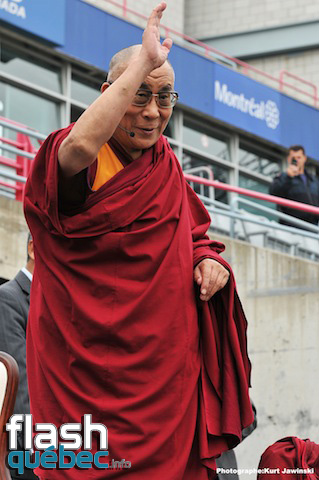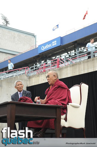 Le Dalaï-Lama rencontre le public au Satde Uniprix de Montréal, dans le cadre de la Deuxième Conférence globale sur les Religions du monde, après les événements du 11 septembre 2001, présentée au Palais des Congrès de Montréal, le 7 septembre 2011.