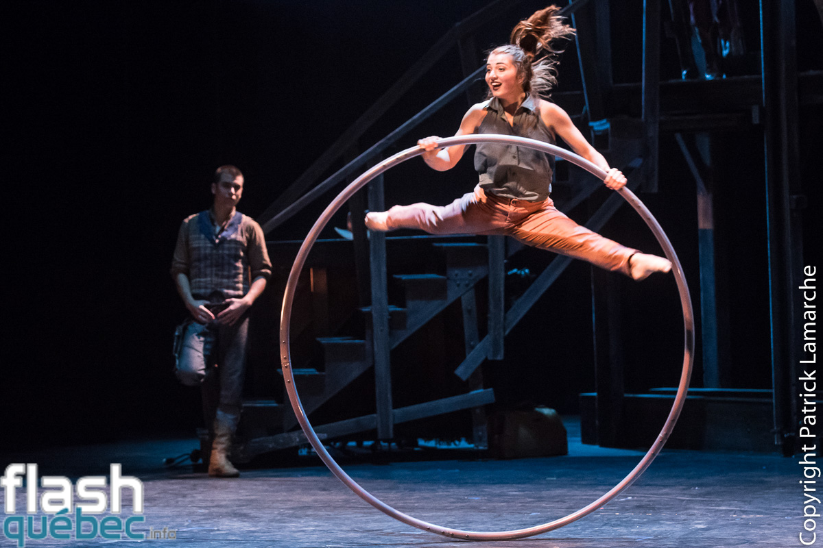 On apprécie aussi la polyvalence des artistes qui font des acrobaties, dansent, chantent et jouent de la musique pour certains comme celle qui a fait le numéro de roue Cyr. Après avoir tourné pendant plusieurs minutes, elle se retrouve à jouer du violon sur les épaules d’un autre artiste. C’est d’ailleurs l’une des forces de ce spectacle et du Cirque Éloize : la versatilité de ses membres