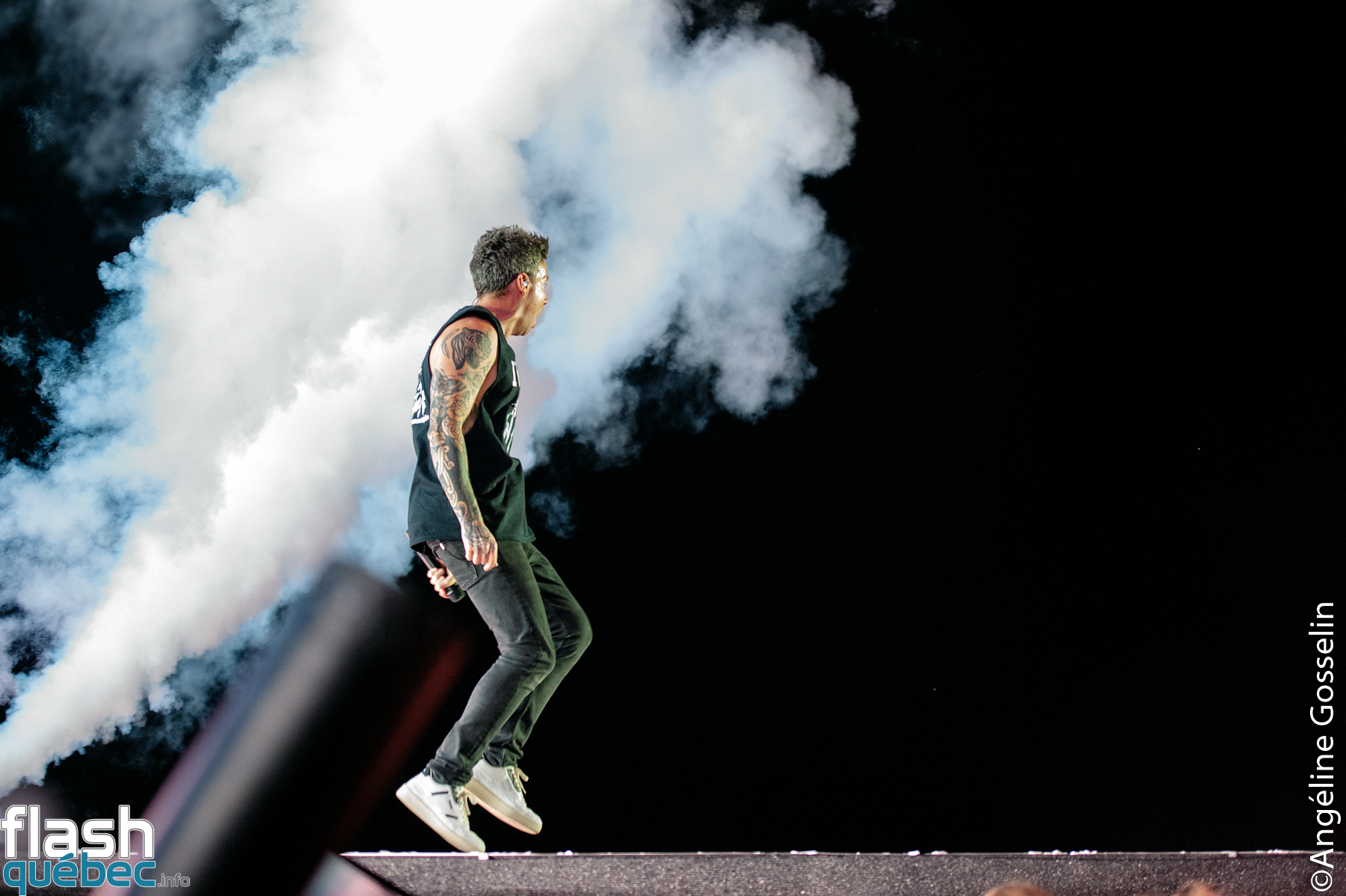 Boucane, confettis, trâlée de Scooby-doos et énormes ballons de plage ont été déployés, mais en toute honnêteté, Pierre, tout en voix, au bout de sa passerelle, vêtu de son débardeur « i’m just a kid an adult » était, avec ses acolytes, l’essentiel du spectacle!