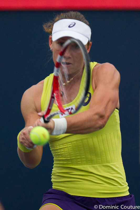 Stosur a dû attendre à sa quatrième présence au service avant de s’inscrire enfin au pointage. La triple championne de la Coupe Rogers, chaque fois à Toronto (2001, 2011 et 2013), a eu le temps de créer la parité avant qu’une légère averse ne vienne interrompre le duel pendant 30 minutes.